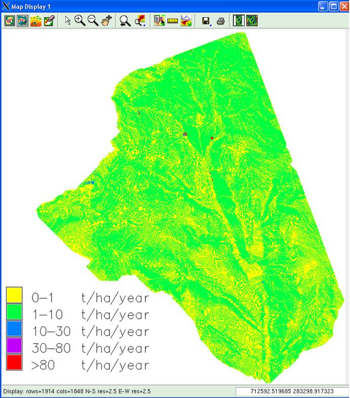 2. A Toka patak északi vízgyűjtőjének tematikus eróziós térképe átlagos eső esetére
