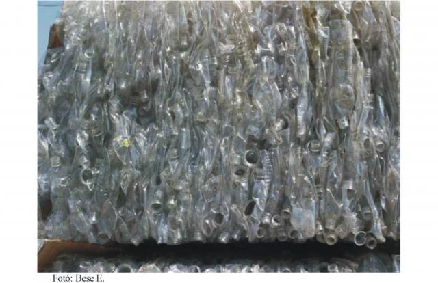 A műanyag-hulladék tárolásá, szállítása bálásítva történik költséghatékonyság végett.